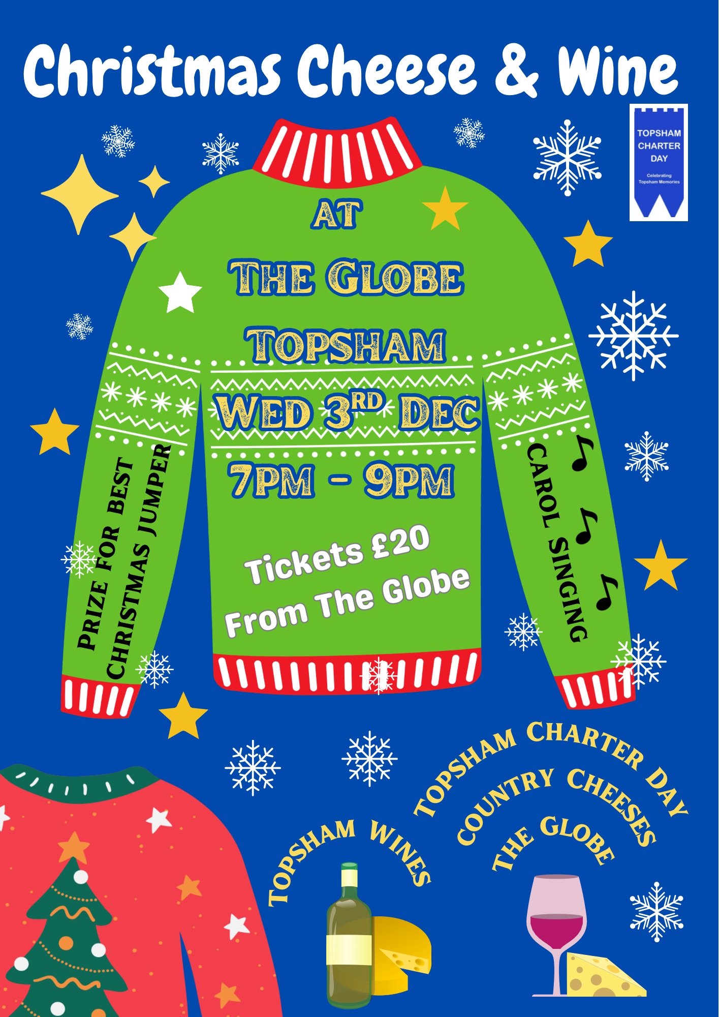 Join the Charter Day team at The Globe in Topsham for their traditional Christmas Cheese & Wine evening from 7pm to 9pm on Wednesday 3rd December.