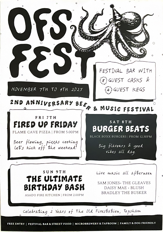 The Old Firestation is celebrating being open for 2 years with OFS Fest from 7th to 9th November. A different celebration every day. See poster above for details