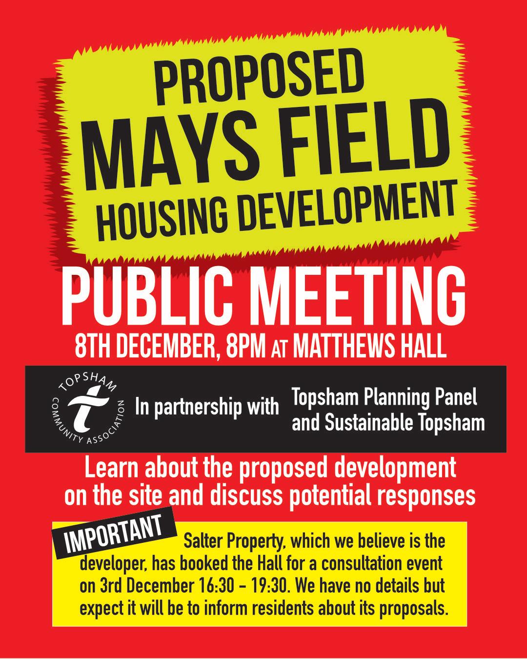 Public Meeting: Mays Field Housing Development + Add to Google Calendar + iCal / Outlook export The event is finished. December 2025 Dec 19 2025 Topsham Film Society: The Holdovers Matthews Hall, Topsham January 2026 Jan 07 2026 Part Time Art Classes for Adults in Topsham Afternoon Class 1.30pm – 4.30pm from Jan 10th- ColourWheel Exeter The Salutation Inn Jan 07 2026 Part Time Art Classes for Adults in Topsham Evening Class 7pm – 9pm from Jan 10th- ColourWheel Exeter The Salutation Inn Jan 09 2026 Topsham Film Society: A Complete Unknown Matthews Hall, Topsham No event found! Load More
